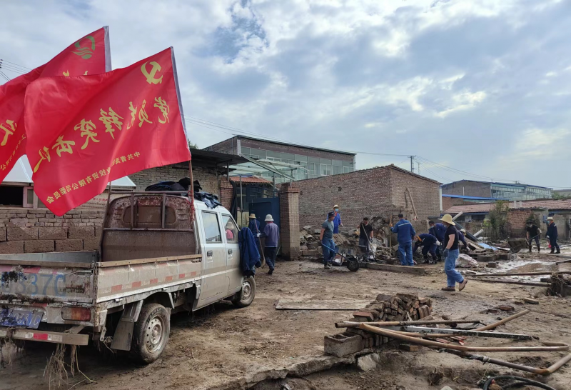 嚴峻的災情牽動著物產人的心。公司黨委聞“汛”而動,按照大通縣政府、北川管委會安排,及時組建抗洪救災“黨員先鋒突擊隊”“團員青年先鋒隊”,于8月20日、21日奔赴受災最嚴重的青林鄉災區,搶險救災。